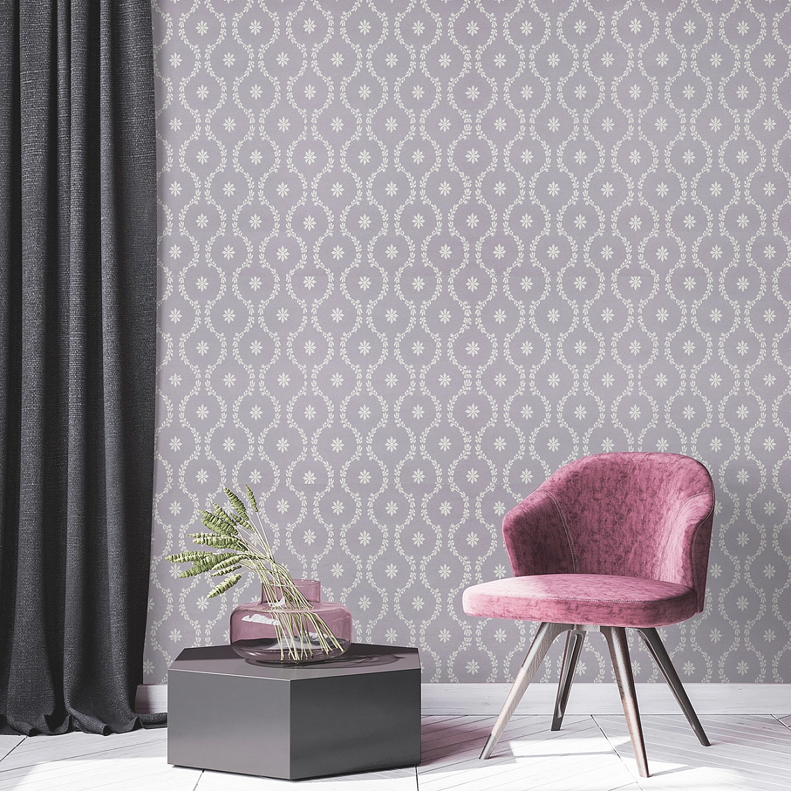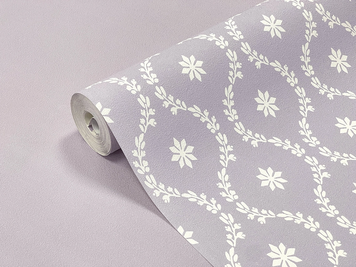 Сиреневый оттенок обоев придает помещению нежность и романтичность, создавая атмосферу уюта и спокойствия. Мотив узоров Jolly добавляет игривости и веселья, делая ваш интерьер более живым и ярким.